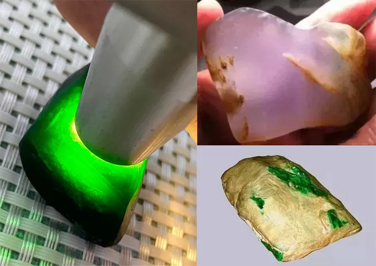 內部結構朦朧不可分辨,有棉質化,看起來像煮熟糯米的感覺。白色帶其他顏色且微透明,玉肉質越細,底子越幹凈,飄色越鮮艷自然價值越高。